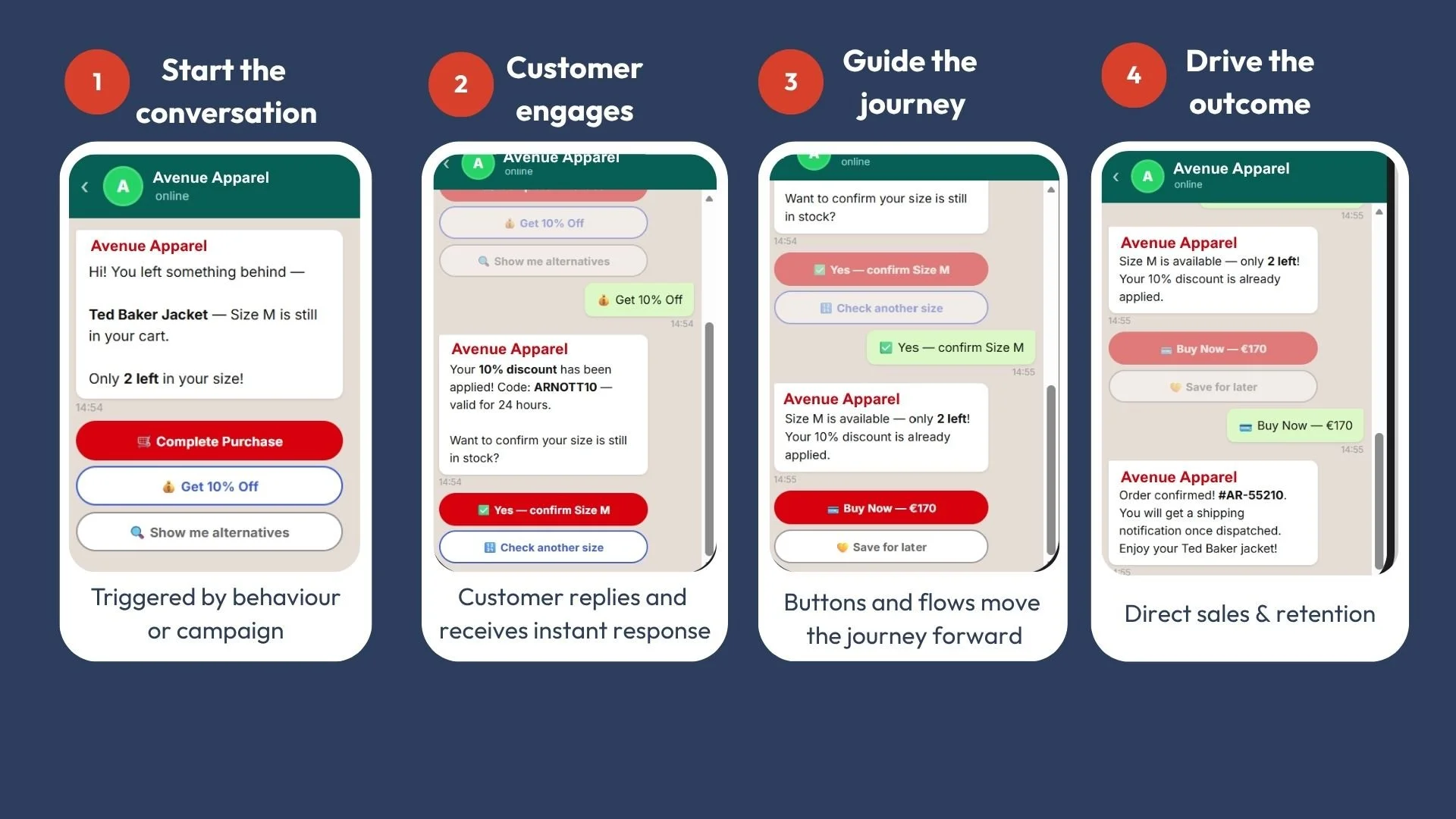 From first message to customer action, all within one conversation.
